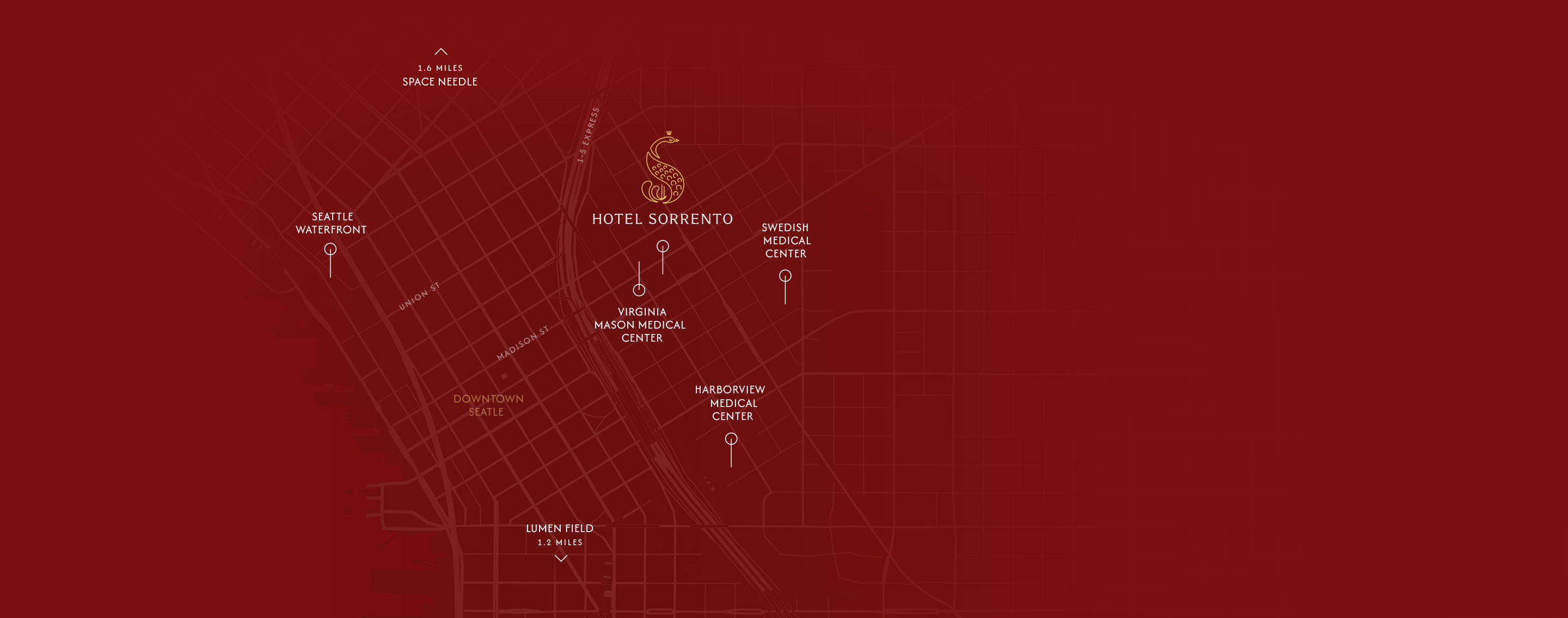 Set on First Hill, Hotel Sorrento overlooks downtown while keeping its own sense of calm. Just steps from museums, theaters, and Seattle’s waterfront icons, it’s a setting that connects you to the city yet feels like a world apart.